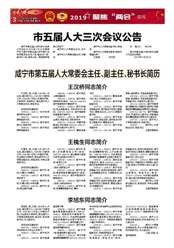 咸宁市第五届人大常委会主任、副主任、秘书长简历
