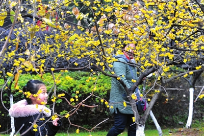 昨日,记者在市区淦河两岸的公园内看到,此时的腊梅开得正旺,一朵朵金黄的花朵晶莹剔透、香气四溢,为即将到来的春节增添了几分灵动与诗意,呈现出一片生机勃勃、欣欣向荣的景象。 赵忠志/摄