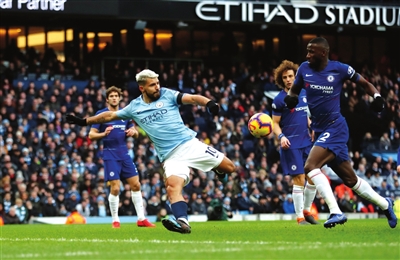 本报综合消息 北京时间昨晨,英超第26轮上演一场焦点战,双蓝会曼城与切尔西的比赛完全成了一边倒。“蓝月亮”主场6比0狂屠“蓝军”,阿奎罗更是上演了帽子戏法。先赛1轮的曼城拿到联赛3连胜后,积分达到65分追平利物浦,蓝月亮以净胜球优势暂居榜首。切尔西联赛客场三连败后退出前四。