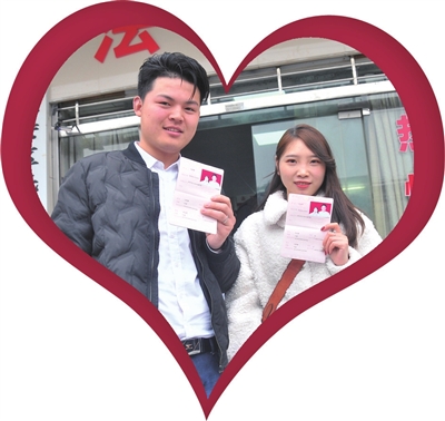 昨日,咸安区民政局婚姻登记处人头攒动,许多情侣在这里高兴地办理结婚登记手续,正式步入婚姻的殿堂。据悉,当天共有170余对情侣领证登记。 毛亚轩/摄