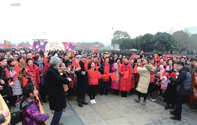 “我们行里的40多名退休员工都是在红旗下长大,跟着共和国前进步伐成长的。咸宁的春晚舞台上,我们带着对母亲的爱唱《没有共产党就没有新中国》《歌唱祖国》;元宵节里,我们快闪合唱《我和我的祖国》,唱得热血沸腾,唱得激情澎湃!我们将以崭新的姿态,跨进新时代!”退休干部罗勇在参加了元宵节活动后激动地说。