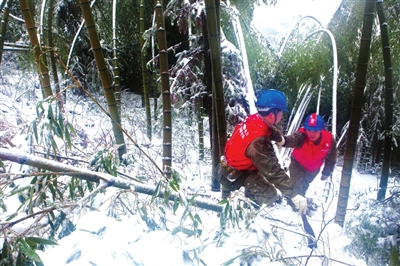 2月23日,崇阳县金沙供电营业所员工巡查冰雪中的配电设施,及时消除供电隐患,确保高寒山区居民的可靠供电。特约记者 邓东峰/摄