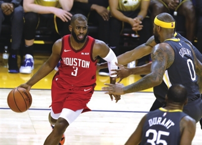 本报综合消息 美职篮(NBA)23日继续进行。在哈登缺阵的情况下,保罗带领火箭客场118:112战胜西部领头羊勇士。另一场焦点比赛中,尽管詹姆斯砍下27分和12个助攻,湖人却在客场以115:128不敌鹈鹕。