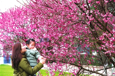 24日,我市结束连续阴雨天气,市民纷纷走出家门游玩。记者在市人民广场看到,粉红色的红梅悄然绽放,煞是好看,许多市民在树下拍照,留下春天的记忆。 记者 张仰强/摄