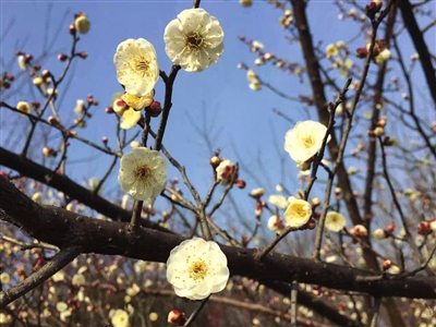 市人民广场一直是最佳的赏梅地点,因为这里的梅花规模比较集中一些。现在这里的梅花正在开放,天气好时,一家人可以去游玩赏梅。