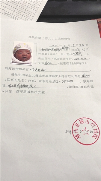 | 寻找弃婴生父母公告 |
