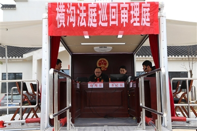 本报讯(记者原子 陈诗傲)“这车子怎么一下子就变成了审判法庭了。”2月25日上午,一辆特殊的警车开进咸安区官埠桥镇张公庙村村委员会门口,几名身穿法院制服的男子下车后一阵捣鼓,警车车厢变成“微缩版”审判法庭,让附近村民惊奇不已。当日,咸安区法院横沟法庭在这个“审判庭”上开庭审理一宗买卖合同纠纷案件。