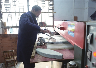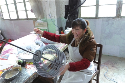 当天,银丰工艺负责人吴金旺远在上海筹备第29届中国华东进出口商品交易会的布展,夕阳灯车间主任熊艳明给我们当起了向导。“公司每年都参加各种展销交易会,几 乎每次都能收到大笔的订单。”熊艳明介绍,从2015年起,厂子里一年到头几乎都没有停歇,尤其是下半年,订单一波一波地涌来,为了赶制订单,就得加派人手、加班加点。