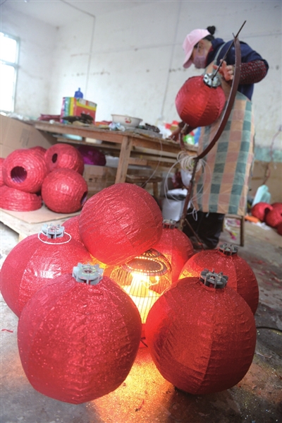 吴金旺在电话中向记者介绍道,从1998年老厂改制后,他们就办起了这个手工灯笼厂。从那时起,当地周边的留守妇女大多都应聘到这里来上班。经过二十余年的发展, 目前公司的固定员工已经达到158人,加上临时性用工,共有260余人。去年8月,通过沙坪镇政府牵线搭桥,银丰工艺在沙坪镇进口村组建起扶贫车间,让当地贫困户不出村,也能 赚得加工费。