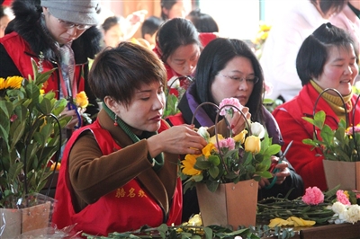 为庆祝“三八”妇女节,丰富女性义工业余文化生活,提高美学素养,3月3日下午,咸安区浮山办事处银泉社区联合咸宁义工协会、花野小铺开展了“以花为礼·感恩有你”为主题的艺术插花活动。 (记者王奇峰 通讯员王枫 刘洁)