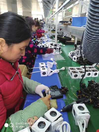 在湖北阿乐乐可科技有限公司,6台机器正在满负荷生产零件,工人们则忙着组装魔方插座。