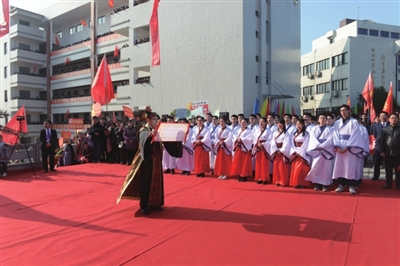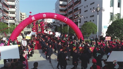 当天,千余名学子排成整齐的方队,聚集在操场上,迈着整齐的步伐,喊着响亮的口号,向台上的老师和家长们展示莘莘学子们积极向上的精神风貌。随后,学子们穿过彩虹门,攀登假山,预示着在面对艰难和挫折时,学子们将勇攀高峰一往无前的奋发态度。在过点石门、祭拜孔子像、走“成功之路”等一系列环节里,学子们从与老师和家长的互动中,感受到了自信和鼓励,纷纷呐喊宣示,将在以后的日子里奋发学习,向人生梦想努力拼搏。