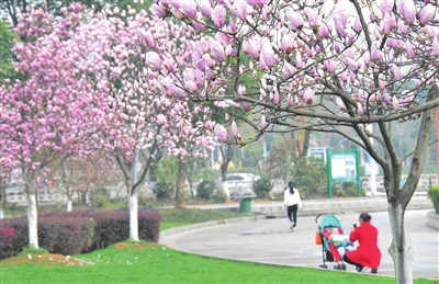 漫步在人民广场,感受着阳光的沐浴,闻着花开的阵阵芳香,听着虫鸣鸟叫;行至贺温路,道路两旁的白花儿让你似乎一下置身“桃花源”……红花、黄花、白花等花色缤纷各异;玉兰、郁金香、风信子等花儿丰富多彩。徜徉春日花丛中,感受着无限蓬发的春意。