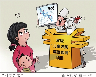 新华网消息 通过唾液就能测出孩子具备哪种天赋,并以此作为孩子的“培养说明书”,培养出某个领域的天才……名为“儿童天赋基因检测”的项目,近来在各地悄然流行。虽然有的收费高达数万元,但还是受到不少父母的追捧。记者调查发现,多数推广儿童天赋基因检测项目的公司本身其实不具备检测能力,只是通过招商代理牟取暴利。受访的多位专业人士表示,天赋基因检测并无充分、严谨的科学依据,只是高价商业项目披上的“科学外衣”。