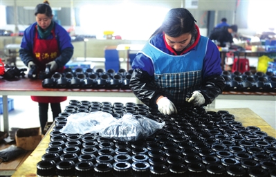 26日,湖北故联实业有限公司员工在检验汽车零部件。该公司位于咸宁高新区,总投资1.3亿元,是专门生产盘式制动器等汽车零部件的专业厂家。今年以来,该公司内抓产品质量,外拓市场销售,呈现出产销两旺的好势头,预计年实现产值1.5亿元,税收800万元。