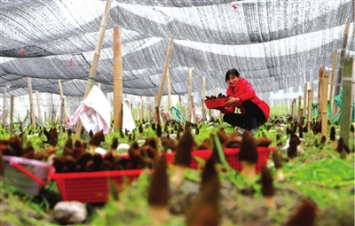 羊肚菌是世界著名的四大食用菌之一,富含硒、氨基酸成分,药用价值堪比冬虫夏草,可锅仔,亦可煲汤。价格高,市场需求量大,新鲜菌百元一斤,烘干后每斤可售1200—1800元。药姑山野外偶有生长,村民称之为“竹笋菇”。