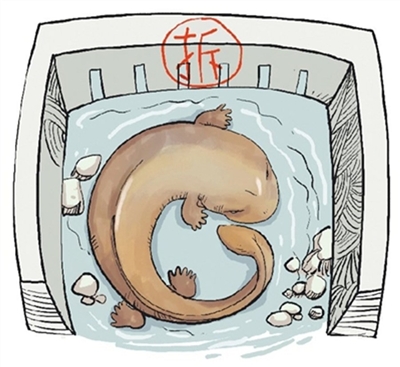 据报道,为了保护野生娃娃鱼的栖息地,湖南张家界启动了一场大规模的“拆坝”运动。截至2018年12月,湖南张家界大鲵国家级自然保护区内已有34个水电站被关闭退出,长江重要支流澧水流域的10座水电站大坝被拆除。