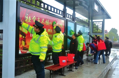 活动现场,公交车、出租车、客车张贴上学雷锋“日行一善、载德前行”宣传标语从客运中心出发……团县委、县交通系统及义工协会的志愿者们积极参与活动,义务打扫客运中心站内及站外环境卫生、清扫城区公交候车亭,给广大市民一个干净、卫生、整洁、靓丽的候车环境;同时向客运司乘人员及群众发放了学雷锋“日行一善、载德前行”倡议书500份,倡导全民学习雷锋精神。