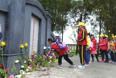 紧接着,小记者们来到北伐战争汀泗桥战役遗址,感受北伐先锋们为理想坚贞不屈的“铁军”精神。在国民革命军第四军北伐阵亡将士纪念碑前,肃穆之情油然而生,刚刚还在嬉闹的小记者们立刻安静肃立。为革命先烈敬献鲜花、缅怀阵亡将士。小记者工作人员桃子老师带领大家温习誓词,感恩革命先烈用生命换回我们今天的幸福生活,激励大家学会感恩、学会珍惜,不断完善自己,做优秀的少先队员。