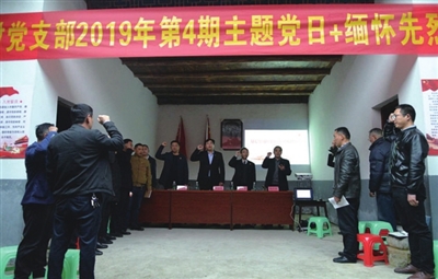 这是当天上午,该镇15个村(社区)党支部书记和该村党员、团员及村民代表在程益桥村8组吴茂林烈士故居,共同参加该村党支部2019年第4期主题党日+缅怀先烈活动的一个镜头。