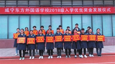 本报讯(通讯员谢亚桥) 3月26日,咸宁东方外国语学校举行了2018级入学优生奖金发放仪式,全面实施“质量立校,特色兴校,管理强校”转型升级的办学理念,满足广大学生的求学目标和学校的发展需要,加强学校的优生战略,更好地激励学生学习,提高所有学生的学习热情。
