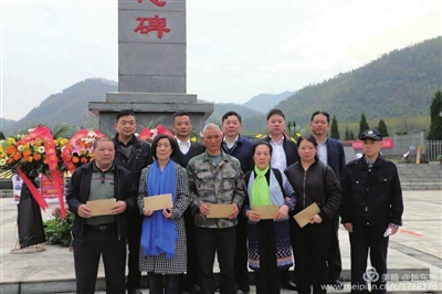 就在同一天,在湖北省、咸宁市、赤壁市三级退役军人事务部门和赤壁市巾帼志愿者团队开展的“祭英烈 助返程”活动中,来自广东、广西 、四川、湖北等地的5位烈士亲属来到赤壁市羊楼洞142子弟兵烈士墓群祭奠烈士亲人,缅怀烈士亲人的英雄事迹,了结了几代人的牵挂。