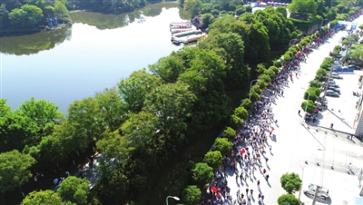 4月19日上午,咸宁城区第30届春季健步跑在十六潭公园举行,5000余名跑友满怀激情,热力开跑! (记者 赵忠志 张仰强 实习生 孔少辉 通讯员 林宁)
