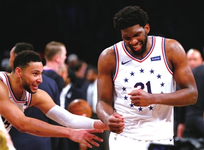 本报综合消息 美职篮(NBA)季后赛首轮20日继续进行,“大帝”恩比德以31分16个篮板7次助攻6个封盖的惊人表现帮助76人在客场112:108险胜篮网,总比分3:1拿到赛点。常规赛得分王哈登化身“铁匠”,全场运动战出手20次仅3中,但交出22分10次助攻6次抢断的数据,率火箭104:101险胜爵士,大比分3:0领先。