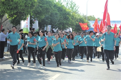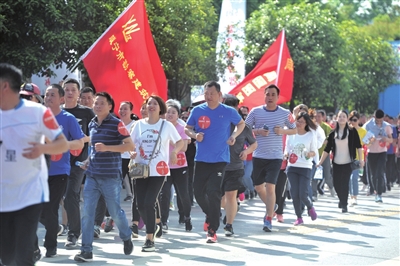 上午9时,随着一声枪响,5000余名跑步爱好者冲出起跑线。他们从市发改委门口出发,途经十六潭路、十六潭公园3号入口、环十六潭公园,到达终点十六潭公园广场。全程约4公里,现场无论是二三十岁的年轻人,还是五六十岁的老年人,或者跟着大人一起参跑的孩子们,一个个你追我赶奋勇向前,大家本着重在参与的精神快乐跑步。