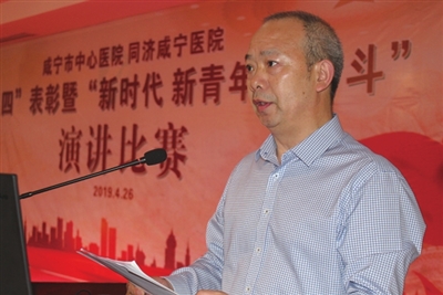 为弘扬优秀传统文化,培育社会主义核心价值观。在“五四”青年节到来之际,4月26日,咸宁市中心医院在该院学术报告厅举办“五四”表彰大会暨“新时代 新青年 新奋斗”为主题的演讲比赛,对过去一年中涌现出来的优秀青年团员进行了表彰,以此激励广大青年团员立足岗位,积极投身于医院的建设之中。市中心医院领导、全院团员、团干及党支部书记参加了此次表彰庆祝活动。