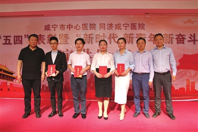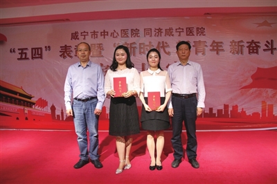 咸宁市中心医院广大青年团员践行社会主义核心价值体系,进一步树牢“四个意识”,坚定“四个自信”,坚决做到“两个维护”,以强烈的主人翁责任感和蓬勃的生力军创造力,积极参与社会主义和谐社会建设,以执着的信念、优良的品德、丰富的知识、过硬的本领,在各自平凡岗位上散发出光彩夺目的青春之光,用智慧、激情与汗水书写人生华丽篇章。特别值得提到的是,该院生殖中心副主任徐岚荣获2019年度“咸宁市青年五四奖章”。