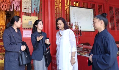 “五一”劳动节之际,中印友好文化交流“缤纷印度·咸宁之夜”主嘉宾印度驻华大使馆文化参赞纪提卡·斯里瓦斯塔瓦,来到太乙观参访,了解了中华优秀传统文化道教文化及太乙观历史,并进行了文化和旅游交流。