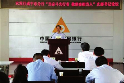 本报讯 (通讯员 陈韵) 近日,农发行咸宁分行举办“当奋斗先行者,做使命担当人”支部书记论坛,为系列主题党日活动开篇布题,该行党委班子和机关(营业室)全体干部职工以及辖内10个党支部书记参加论坛。