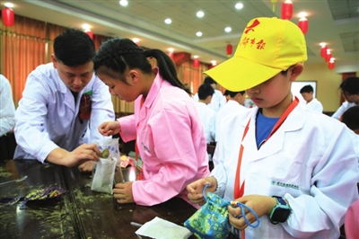 认识了几味简单的中药,现场工作员与小记者们互动,分享对中药的其他认识。“我曾经患了湿疹,爸爸带我看了中医,开几副中药调理好了。”小记者周汉生对中药的印象就是味苦,但中药的疗效让他赞叹不已。