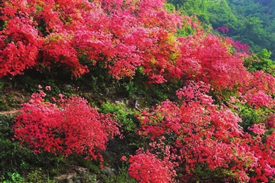 大幕山·杜鹃花大幕山海拔700多米,杜鹃枝头添绿,花儿吐蕊;竹子青翠,芳草萋萋,处处景色旖旎。置身其中,让人流连忘返。杜鹃花次第盛开,连绵10多个山头,灿如云霞,艳如骄阳,异常壮丽。每到赏花期,大幕山杜鹃花便开始怒放,漫山红遍,层林尽染。