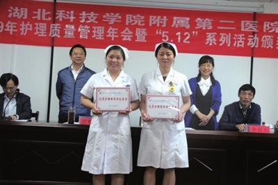 本报讯(记者 夏咸芳 通讯员 余静萍 程仁杰)5月10上午,湖北科技学院附属第二医院召开2019年护理质量管理年会暨“5·12”系列表彰大会。会上一批优质护理服务病区、优秀护士长、优秀护士、病情汇报获奖个人受到表彰。
