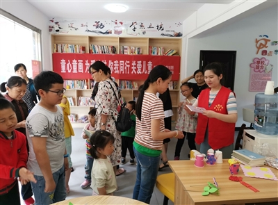 5月17日,咸安区温泉办事处桂花路社区在银泉名座小区“红色驿站”图书室开展“为爱助航,你我同行,关爱儿童”为主题的亲子活动。