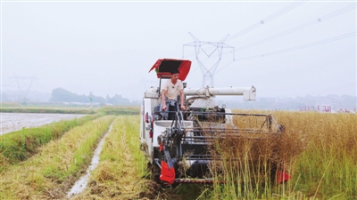 “手工割油菜,人工成本相当高。每人每天仅能收割0.8亩左右,工钱为150元钱;机械收割每小时5至6亩左右,每亩收割成本为80元钱,一天以工作8个小时计算,即可收割油菜40余亩。”看着连绵细雨中,被机械成功抢收下来十几亩油菜,瑞丰家庭农场负责人樊必练乐呵呵地说。