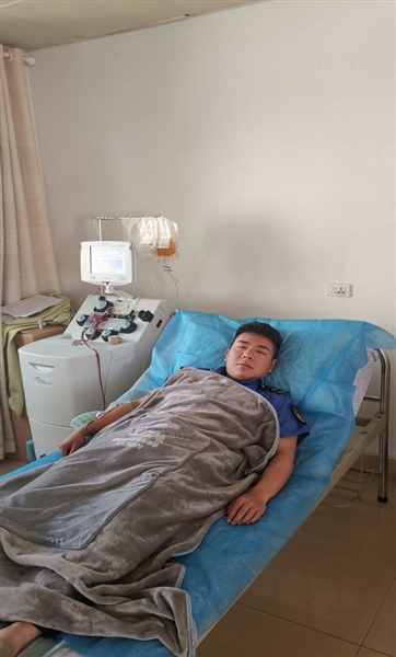 “你痛不痛啊?血站的同志说,捐血小板需要一个小时左右的时间。”在市中心血站,看着躺在床上的余阳,随行的同事关切地问。余阳则笑着说:“没事,我的血小板能帮助有需要的人,我很开心。这点痛不算什么。”