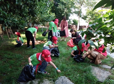 活动中,60余名志愿者拿着钳子、垃圾袋等工具,对淦河边的烟头、纸屑、包装盒及白色垃圾进行了拉网式清理。市第三小学的学生在社区志愿者的带领下手拿垃圾袋与钳子,分工协作,有的清理地上的烟头,有的拾捡绿植中的塑料袋。淦河边,红马甲与红领巾构成了一道亮丽的风景。