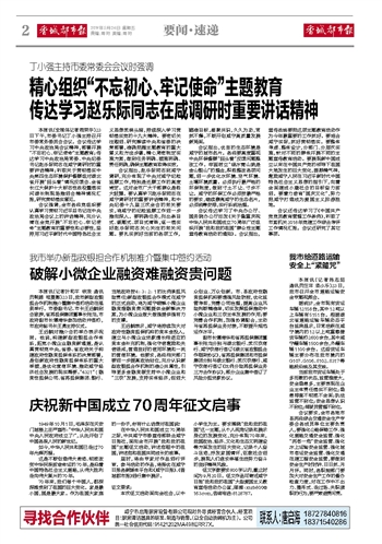 精心组织“不忘初心、牢记使命”主题教育 传达学习赵乐际同志在咸调研时重要讲话精神