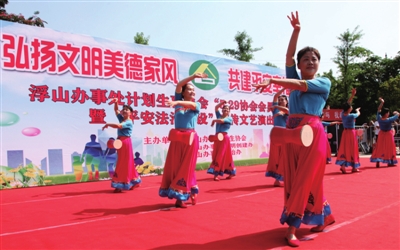 28日上午,由咸安区浮山办事处计生协会、文明创建办、综治办主办的咸安区浮山办事处计划生育协会“5·29协会会员活动日”暨“平安法治建设”宣传文艺演出在区政府广场举行。16个村(社区)居民自排歌舞节目,通过文艺演出的方式推广平安法治建设宣传。 (记者 毛亚轩 实习生 孔少辉 通讯员 刘洁)6版