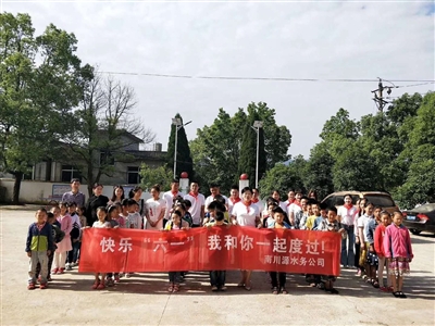 以水为本,达善社会。昨日上午,咸宁市南川源水业公司总经理刘红玲带领公司员工,走进“百企帮百村”帮扶村南川村刘祠小学,为48名小学生送去了新书包、学习用品和体育用品等,还与学生们一起玩游戏、讲故事,在“六一”儿童节前为孩子们送去了欢乐。