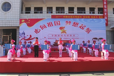 随着“六一”儿童节的临近。连日来,我市各小学及幼儿园纷纷开展形式多样的主题活动。孩子们用最美的舞蹈、最甜的歌声、最有趣的游园活动,共庆“六一”,献礼祖国七十华诞。每个节目都融汇一个主题:少年梦、求索梦、强大梦。 (记者 夏咸芳)