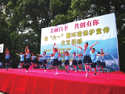 5月29日,崇阳县路口镇白羊小学“六一”汇演拉开帷幕。“花船歌”、《三句半》、舞蹈《一年级》……此次汇演将环保主题贯穿始终,节目丰富多彩,喜闻乐见。当天,该县商务局驻村工作队队员还向学生们赠送了学习用品。 (记者 王奇峰 特约记者 甘明强)