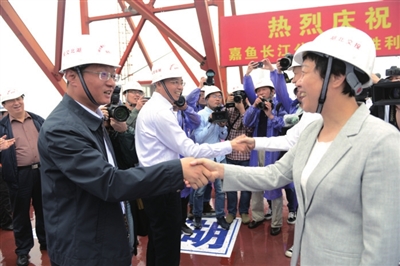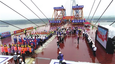 5月30日上午11时许,当最后一段钢箱梁吊装完毕、开始焊接,施工建设3年有余的湖北嘉鱼长江公路大桥成功合龙。