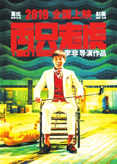 本报综合消息 由李非执导,赵薇监制并主演,葛优领衔主演的喜剧电影《两只老虎》日前曝光了先导预告和先导海报,宣布将于2019年全国上映。预告中,葛优“齐刘海”形象上线,身着白色西装,手持高尔夫球杆独坐废弃泳池中,用美声唱响经典童谣《两只老虎》,强烈的反差尽显影片幽默气质。