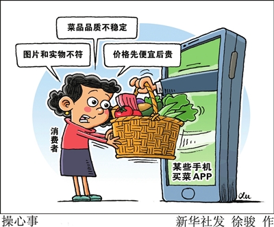 在方便购买的同时,部分消费者也遭遇蔬菜瓜果品质不稳定、货不对板等操心事。手机买菜如何实现消费方便和放心消费的兼得,记者就此进行了采访。