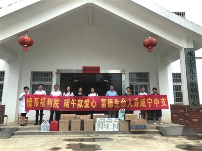 “我们为这场公益活动准备了近半个月,还在全公司号召大家参与。活动方案一出来,有人捐款,有人捐物,有人出力,大家都想提供力所能及的支持,传递“生命人”的爱心。”富德生命人寿咸宁中支相关负责人介绍,除在端午节现场为老人们包粽子外,公司还为市福利院和市儿童福利中心准备了100余斤咸鸭蛋、皮蛋、绿豆、白糖,240斤有机黄小米,47件书籍及文具,29件夏季薄毯、灭蚊灯、按摩器、咖啡壶计,102件员工捐赠的服装,以及2000余元爱心款折成的衣服鞋子等物资,回馈给需要帮助的人们。
