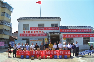 本报讯(通讯员 陈明生 叶立清)6月3日逢赤壁市基层党支部主题党日,在该镇石头口村党员活动广场上,一场特殊的团购活动——赤壁农行、石头口村主题党日+助力扶贫爱心购正火热进行,当地贫困户及合作社社员单位共计26户在现场摆台销售农产品。